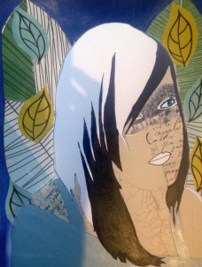 My collage is also based on emotions, the mask is because nobody truly knows who you are inside, and I feel that way sometimes, like I wear a mask; it’s the split personality- the difference between the interior and exterior self. I also like the colour of the paper it’s like my skin. I like the way the road map looks like veins running down my neck. The letters on the skin are to show that I have a story and the colours in the background are to show my love for nature, and everything natural and how we live every day and hardly notice the beautiful world we live in. Even when I do my photography the natural world is my favourite subject.