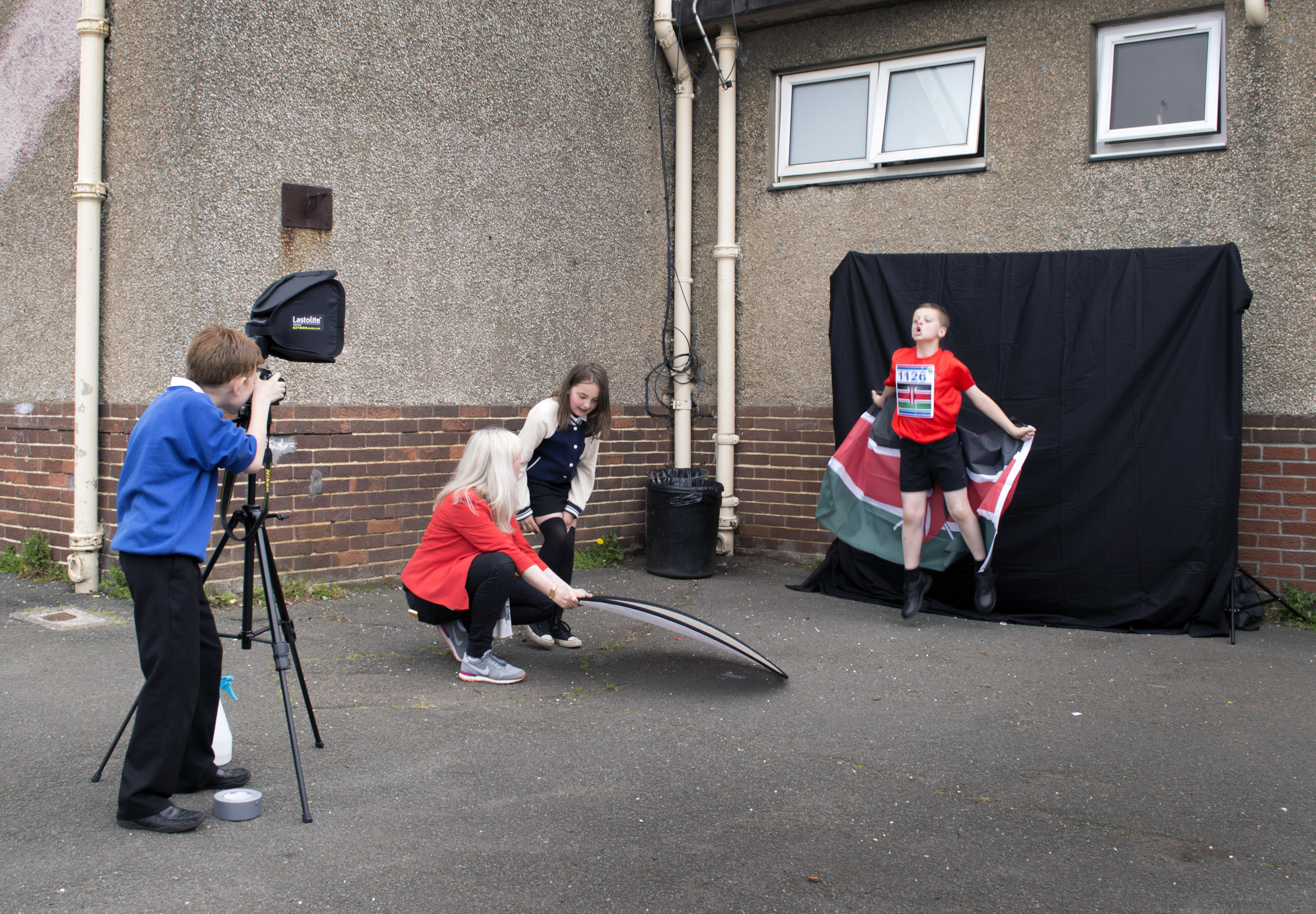 The children began with their practice shots. As you can see the day we worked on the practice shots the Wild Wolves had the luxury of working in a classroom! It allowed us to practice setting up the background stands and practice pose. From my perspective it’s also good practice for me to make sure that i am working to that delicate balance of demonstrating and teaching but still allowing the children full creative control.